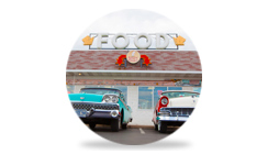 Route 66-Nostalgie spürt man in diesem Schnellimbiss in Springfield, der zu einem Wahrzeichen der legendären Straße geworden ist. Hier gibt’s nicht nur eine bunte, skurrile Auswahl an Erinnerungsstücken und Souvenirs, sondern auch den One and Only “Cozy Dog”: Wurst am Stiel im knusprigen Teigmantel, zubereitet nach original Familienrezept!