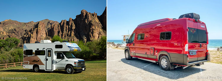 Gerade weil die kleinen, wendigen Camper so beliebt sind, haben sich zwei der größten Vermieter jeweils einen neuen Fahrzeugtyp ins Haus geholt, um auf die hohe Nachfrage zu reagieren. Und so gibt es den C21 von Cruise America (links im Bild) sowie den B21 von Road Bear (rechts im Bild)! Alle Modelle im Überblick finden Sie, wenn Sie dem Button folgen.